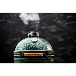 | Weitere Informationen | Aufbau von unten nach oben: Hitzeisolierendes Unterteil aus Keramik mit Zuluftventil, der Feuerkorb mit Kohlerost in der Brennkammer wird mit Holzkohle gefüllt, Feuerring, Grillrost, Keramikkuppel mit Thermometer, Schornstein und Regulator. | ||