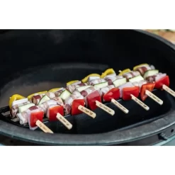 | Weitere Informationen | Aufbau von unten nach oben: Hitzeisolierendes Unterteil aus Keramik mit Zuluftventil, der Feuerkorb mit Kohlerost in der Brennkammer wird mit Holzkohle gefüllt, Feuerring, Grillrost, Keramikkuppel mit Thermometer, Schornstein und Regulator. | ||