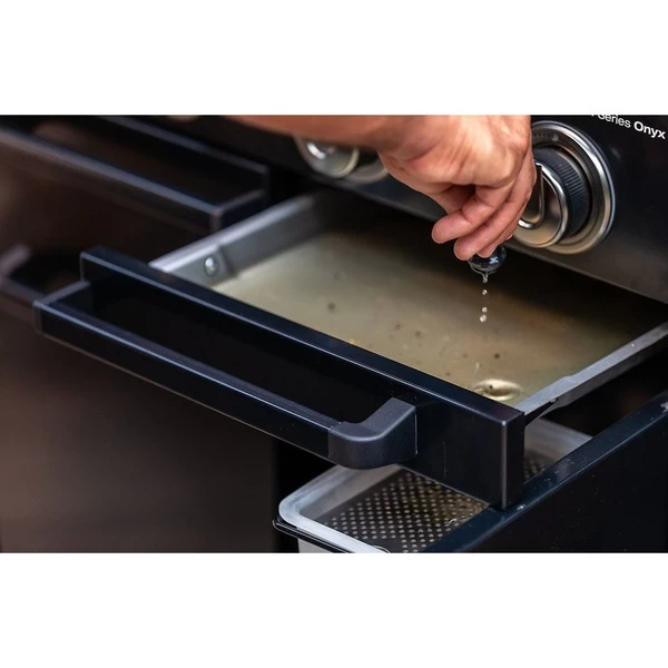 Der 4 Series Onyx Gasgrill bietet hochwertige und zuverlässige Materialien in Verbindung mit viel Komfort, und einen zusätzlichen Seitenkocher fĂĽr die Zubereitung von GemĂĽse oder SoĂźen. Die praktische InstaStart-ZĂĽndung ist eine in den Gasregler integrierte elektronischen ZĂĽndung. Beim DrĂĽcken des Reglers wird durch Spannung der Funke gezĂĽndet, und beim Drehen des gleichen Knopfes strömt das Gas aus, was direkt durch den Funken gezĂĽndet wird. Die patentierte Blue Flame Power Technologie heizt den Grillrost schnell und sehr gleichmäßig verteilt auf die benötigten Temperaturen auf, und die Even Temp Technologie sorgt fĂĽr eine konstante Hitze auf der gesamten Grillfläche. Dank dieser patentierten Technologie wird eine Temperatur von ĂĽber 250°C auf einem GroĂźteil der Grillfläche erreicht. Die zahlreichen optional erhältlichen Campingaz Culinary Modular Zubehöre sorgen fĂĽr noch mehr kulinarische Vielfalt beim Kochen und Grillen. Mit den vier gummierten Gelände-Schwerlastrollen und zwei Feststellbremsen lässt sich der 4 Series Onyx zuverlässig auf kleinstem Raum manövrieren und sicher abstellen. Der „Push2Fold“ abklappbare linke Seitentisch bietet Platz fĂĽr Grillgut und Zubehör. In den neuen Gasgrill-Modellen 2021 ist die innovative Campingaz InstaClean Aqua Technologie verbaut. Dank des Wassers wird das anschlieĂźende Reinigen des Grills erleichtert. In die von vorne zugängliche Fettauffangschale wird Wasser gefĂĽllt, was das Einbrennen von Fett und Essensresten in der Schale verhindert. Das beim Grillen verdunstete Wasser wirkt auĂźerdem im gesamten Grillinnenraum fettabweisend, sodass sich das Fett nicht so leicht an dem Material festsetzen kann. Dank dieses cleveren Systems muss man bei der Reinigung nicht angestrengt schrubben, stattdessen können die Teile einfach abgewischt werden. Das benutzte Wasser kann ganz einfach durch einen Abfluss in der Fettauffangschale abgelassen werden. Die Onyx Modelle sind auĂźerdem mit einem Schmutzwasserbehälter inkl. Filter ausgestattet, sodass das Wasser von festen Bestandteilen getrennt werden kann, fĂĽr eine noch einfachere Entsorgung.Art.-Nr.: 1671794