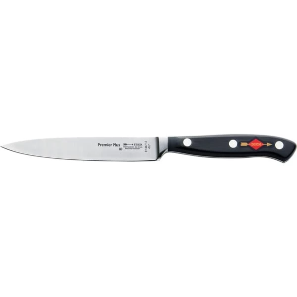 Officemesser sind klein, wendig, scharf und gehören zum Grundsortiment in der Küche. Das Premier Plus Officemesser 81447122 von DICK ist ein unentbehrliches, vielseitiges Werkzeug für Schälarbeiten, kleine Schneidarbeiten und Verzierungen. Professionelle Köche setzen seit Jahrzehnten auf die Messer der Serie Premier Plus von DICK. Die atemberaubende Schärfe, die perfekte Balance und das klassisch elegante edle Design überzeugen Küchenchefs auf der ganzen Welt. Besonders beim täglichen, langen Arbeiten mit dem Messer sind die Griffform ohne störende Kanten und die ergonomische Form von großer Bedeutung. Mit Liebe zum Detail werden die Messergriffe der Serie Premier Plus in feinster Handarbeit aufwändig abgerundet und liegen daher sehr angenehm in der Hand. Jedem Messergriff wird von erfahrenen Profis mit viel Sorgfalt der letzte Schliff verliehen. Besonders großer Wert auf die einwandfreie, erstklassige Schärfe der Messer gelegt. Die Klinge ist aus der hochwertigen Legierung X50CrMoV15 gefertigt, sie steht für lange Schnitthaltigkeit, Verschleißfestigkeit und höchste Endschärfe. Selbstverständlich sind die Premier Plus Messer absolut hygienisch. Durch das besondere Herstellungsverfahren werden die Griffe spaltenfrei mit der Klinge verbunden, so dass keinerlei Speisereste oder Flüssigkeiten eindringen können.Art.-Nr.: 1608838