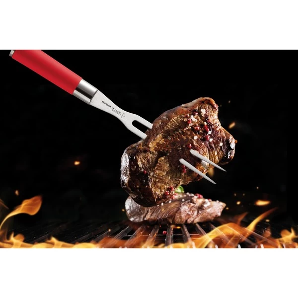 Die Red Spirit Gabel 91701202 von DICK hilft beim Fixieren eines Bratenstücks, beim Zerlegen von Geflügel, beim Wenden von Fleisch und beim Anrichten. Der runde, typisch asiatisch anmutende Griff verleiht der Gabel ihr unverwechselbares Aussehen. Außerdem liegt er perfekt in der Hand und erfüllt optimal alle ergonomischen Anforderungen von Profiköchen und ambitionierten Hobbyköchen.Art.-Nr.: 1608268