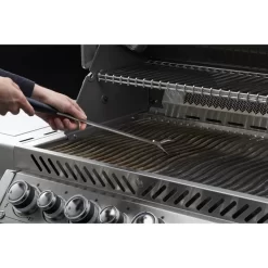 Mit dem Napoleon Grillrost-Schaber 62031 aus Edelstahl wird man eingebrannte Rückstände auf Edelstahl Grillrosten einfach los. Dem langlebigen Edelstahl-Tool macht Hitze nichts aus und es sorgt für den nötigen Druck, um Speiseresten an den Kragen zu gehen. Dank des zweiseitigen Kopfes mit unterschiedlicher Rundung passt der Grillrost-Schaber für unterschiedliche Grillroste, für die 9,5mm und 7mm dicken Roststäbe und auch für Warmhalteroste. Der Griff sorgt für stabilen Halt und dank der integrierten Aufhänge-Öse ist der Edelstahl Grill-Schaber stets griffbereit.Art.-Nr.: 1404595