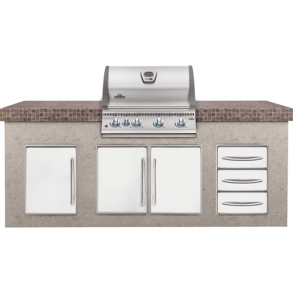 Der NAPOLEON Einbaugrillaufsatz BILEX485 begeistert mit einem kompletten Edelstahl-Grillssystem und fĂŒnf Brennern. Vier Edelstahl-Brenner heizen der 68cm x 46cm GrillflĂ€che ordentlich ein. Dort sorgen WAVEâą Grillroste aus Edelstahl fĂŒr die ideale Hitzeverteilung. Ist der Warmhalterost gerade nicht im Einsatz, bietet der BILEX485 Platz fĂŒr ein optionales DrehspieĂ-Set. Das wird vom Keramik-Heckbrenner befeuert, der auch fĂŒr indirektes Grillen ideal geeignet ist. GeflĂŒgel oder groĂe BratenstĂŒcke gelingen so unter der doppelwandigen LIFT EASEâą Rollhaube besonders lecker. Beleuchtete iGLOWâą Bedienelemente ermöglichen eine prĂ€zise Temperaturregelung, auch wenn das GrillvergnĂŒgen mal lĂ€nger dauert. Der BILEX485 Einbaugrillaufsatz kann auf den passenden OASIS-Unterschrank aufgesetzt oder in feuerfestes Material eingemauert werden. Art.-Nr.: 1850886