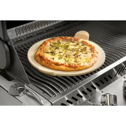 Der Napoleon PRO Pizza-Stein 70001 mit 38cm Durchmesser und seitlichen Griffen zaubert Pizza wie aus Bella Italia. Der beiliegende Pizzaschneider aus Edelstahl teilt die Pizza auch gleich in handliche Stücke. Auf dem Pizza-Stein lässt sich auch hervorragend Brot backen. Cookies begeistern Jung und Alt ebenso und zeigen, wie vielseitig der PRO Pizza-Stein einsetzbar ist. Der Pizza-Stein ist porös und sorgt daher für beste Backqualitäten. Art.-Nr.: 1404592
