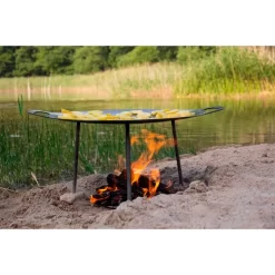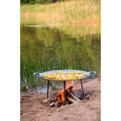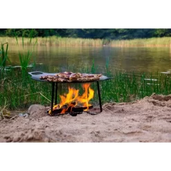 Die Grill- und Feuerschale fs48 von Petromax bietet 2 in 1: Grillpfanne und Feuerschale, das Multitalent aus Stahl. Entweder man entfacht ein Lagerfeuer in der Feuerschale, um den darunterliegenden Boden unversehrt zu lassen oder man stellt die Grillschale mit ihren drei Standbeinen (23cm) über das offene Feuer, um leckeres Essen zuzubereiten. Das Besondere dabei: In der Mitte wird die Schale heißer als am äußeren Rand. Ein saftiges Stück Fleisch gart am Rand nach, während in der Mitte noch das Gemüse brutzeln kann. Bei jedem Brat- und Brennvorgang baut sich eine Patina auf, die für einen natürlichen Antihafteffekt sorgt. Auch ohne ihre Standbeine kann die Grillschale in den Größen fs48 und fs56 z.B. auf einem Atago verwendet werden.Art.-Nr.: 1533716