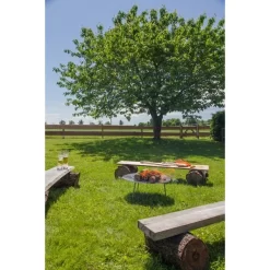 Die Grill- und Feuerschale fs56 von Petromax bietet 2 in 1: Grillpfanne und Feuerschale, das Multitalent aus Stahl. Entweder man entfacht ein Lagerfeuer in der Feuerschale, um den darunterliegenden Boden unversehrt zu lassen oder man stellt die Grillschale mit ihren drei Standbeinen (23cm) über das offene Feuer, um leckeres Essen zuzubereiten. Das Besondere dabei: In der Mitte wird die Schale heißer als am äußeren Rand. Ein saftiges Stück Fleisch gart am Rand nach, während in der Mitte noch das Gemüse brutzeln kann. Bei jedem Brat- und Brennvorgang baut sich eine Patina auf, die für einen natürlichen Antihafteffekt sorgt. Auch ohne ihre Standbeine kann die Grillschale in den Größen fs48 und fs56 z.B. auf einem Atago verwendet werden.Art.-Nr.: 1533720