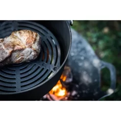 Der Petromax Stapelrost gr-s30 aus massivem Gusseisen sorgt für eine erstklassige Hitzeverteilung und ermöglicht das Backen und Garen in den Feuertöpfen ohne Anbrennen, denn die Füße schaffen einen großzügigen Abstand. Die große Version des Stapelrosts bietet neben der gewohnten gusseisernen Qualität und Haltbarkeit eine gut 7cm größere Arbeitsfläche. In den Feuertopf ab Größe ft12 einsetzbar sorgt der große Stapelrost gr-s30 dafür, dass das Gargut knusprig zubereitet wird, ohne in Kontakt mit dem Sud zu kommen. Da der Rost auf der Oberseite kleine Vertiefungen hat, lassen sich mehrere Stapelroste perfekt übereinander stellen: Backen, Dünsten und Dampfgaren wird auf mehreren Ebenen möglich. Dank der drei Füße mit einer Länge von jeweils 4,3cm steht der Stapelrost auch sicher im Feuer oder auf dem Tisch als Untersetzer. Beim Grillen in der Glut brutzelt er das perfekte Grillmuster ins Fleisch oder dient auch hier als stabile Standfläche für Teekessel oder Perkolator.Art.-Nr.: 1533697
