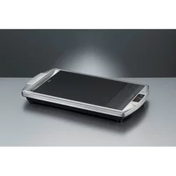 Grillträume werden wahr – mit dem Rommelsbacher Tischgrill CG 2308/TC lässt sich fettarm direkt auf der Glaskeramik grillen, eine elegante und auĂźergewöhnliche Variante. Das formvollendete Design des hochwertigen Edelstahl-Gehäuses begeistert. Ăśber Touch Control-Sensoren und LED-Display kann die Wunschtemperatur eingestellt werden. Die Grilltemperatur des Tischgrill CG 2308/TC wird permanent gemessen und angezeigt. Ist die Solltemperatur erreicht, ertönt ein Signalton. Die elektronische Temperatursteuerung ermöglicht scharfes Anbraten bis 380°C, aber auch Warmhalten oder sanftes Garen auf niedrigeren Temperaturen. So gelingen mit dem Tischgrill CG 2308/TC perfekte Steaks ebenso mĂĽhelos wie zart gegrillte Fischfilets, Vitamin schonend zubereitetes GemĂĽse oder leckere Pfannkuchen.Art.-Nr.: 1000290