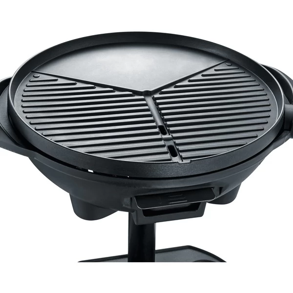 Der Standgrill Barbecue-Elektrogrill PG 8541 mit Grillhaube ist ideal für ein American Barbecue und zum Grillen im Garten oder auf dem Balkon. Die Grillplatte mit mit keramischer Beschichtung ist in kurzer Zeit aufgeheizt und einsatzbereit. Die Temperaturregelung des PG 8541 stellt optimale Grillergebnisse sicher. Die Metallhaube mit Cool-TouchGriff, dient als Windschutz und in geschlossenem Zustand zum Warmhalten des Grillgutes ohne das es austrocknet. Mit dem abnehmbaren Thermostat kann man die Temperatur einstellen. Durch das, in der Haube, integrierte Thermometer lässt sich die Temperatur anhand der klar lesbaren Skala leicht überwachen. Durch die integrierte Ablaufschale läuft überschüssiges Fett einfach ab und zur einfachen Reinigung ist sie leicht zu entnehmen. Das XXL-Anschlusskabel mit 2,8 m sorgt für freie Platzwahl. Der stabile Standfuß mit integrierter Ablage kann abgenommen werden und so wird der Standgrill zum Tischgrill. Art.-Nr.: 1387301