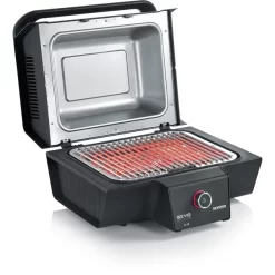 Der SEVERIN Elektro-Tischgrill SEVO SMART CONTROL GT für drinnen und draußen ist die perfekte Verbindung aus High-Tech und echter Grill-Leidenschaft: Mit App-Steuerung und 3-Zonen-Heizungstechnologie wird Grillen nun komfortabler denn je. Er beeindruckt schon durch seine Größe, die massive, hochwertige Ausführung und das edle Design in schwarz und silber. Nie wieder zu wenig Hitze, zu langsam, oder zu klein, denn er überzeugt besonders durch Leistung: 3.000 Watt und die innovative Doppelheizungstechnologie sowie eine speziell entwickelte Reflektorschale ermöglichen eine Spitzentemperatur von 500°C direkt am Grillgut. Die leistungsstarke Boost-Zone ist so abgeteilt, dass auch ein ZweiZonen-Grillen auf der ca. 30×40 cm großen Grillfläche möglich ist. Die eigens entwickelte Heizung verfügt über drei Modi: LowZone – bestens für Low & Slow Gerichte oder zum Nachgaren von Steaks, HotZone – optimal geeignet zum Grillen mit Temperaturen bis zu 340°C und die BoostZone – volle Power mit bis zu 500°C für das perfekte Steak. Dabei kommen Technik- und Grill-Fans gleichermaßen auf ihre Kosten: Über das OLED-Display wird die Temperatur punktgenau digital gesteuert, das integrierte Grill-Thermometer mit bis zu zwei Temperatursonden abgelesen und die Timer-Funktion bedient, mit der sich die Temperatur über mehrere Stunden exakt halten lässt. Dank Deckel und exakter Temperatureinstellung ist er ideal für Slow Grilling Gerichte wie Pulled Pork oder Spare Ribs. Optional kann der SEVO SMART CONTROL auch über die SEVERIN App gesteuert und jederzeit kontrolliert werden. Auch die Funktionen wie Timer und Kernthermometer können hier bequem eingestellt werden. Sogar komplexe Gerichte gelingen dank Grillmaster mit Sicherheit. Ein weiteres Highlight ist die Status-LED-Beleuchtung, die zwischen Violett, Blau, Orange und Rot wechselt und so anzeigt, welcher Temperaturbereich auf dem Grill erreicht ist. Der geteilte Edelstahl-Grillrost (Ø 7mm) und viele weitere Teile sind entnehmbar, wodurch eine leichte Reinigung möglich ist.Art.-Nr.: 1863528