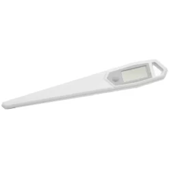 Das handliche digitale Einstich-Thermometer 30.1064 von TFA Dostmann überzeugt durch seine schnelle Ansprechzeit und die hohe Genauigkeit ab ± 0,5°C. Einfach aus der mitgelieferten Schutzhülle herausnehmen, den Edelstahl-Einstichfühler in das Messobjekt stecken und den ON-Knopf betätigen, innerhalb von 4 bis 5 Sekunden erscheint der gemessene Wert im Bereich von -40 bis +250°C. Zum besseren Ablesen der Temperatur kann eine Hintergrundbeleuchtung eingeschaltet werden. Je nachdem, wie das Thermometer gehalten wird, lässt sich das Display per Knopfdruck um 180° drehen und so von Links- und Rechtshändern optimal ablesen. Die gemessenen Höchst- und Tiefstwerte werden gespeichert und sind abrufbar. Das Thermometer schaltet sich automatisch nach 10 Minuten aus. Für Langzeitmessungen kann die Abschaltautomatik deaktiviert werden. Ein Werkszertifikat mit drei Messpunkten (0°C / 100°C / 150°C) ist standardmäßig im Lieferumfang enthalten. So eignet sich das Gerät auch ideal für den Profi-Einsatz, z.B. zur Temperaturkontrolle von Lebensmitteln im Rahmen der HACCP-Verordnungen oder im Labor. Die benötigte Knopfzell-Batterie ist im Lieferumfang enthalten.Art.-Nr.: 1914033