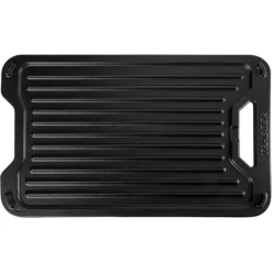 Die passgenaue wendbare Gusseisen-Grillplatte BAC696 von Traeger eignet sich perfekt für die 2023er Pelletgrills Timberline und Timberline XL mit ModiFIRE Grillrosten. Die gerippte Seite lässt das Fett ablaufen und eignet sich hervorragend zum Anbraten von Steaks, zum Grillen von Hähnchen, Burgern oder Speck. Die glatte Seite, auch Plancha genannt, ist ideal zum Backen von Pfannkuchen, Rösti oder gegrilltem Käse. Der einzigartige Geschmack des Guss-Geschirrs entsteht durch die konstante Rundumwärme. Dank der vorbehandelten Oberfläche ist die robuste, pflegeleichte Gusseisen-Platte sofort verwendbar. Mit ModiFIRE kann man die Kochfläche des Grills schnell verändern, ohne dazu den Rost entfernen zu müssen. Sämtliches ModiFIRE-Zubehör passt sicher auf die ModiFIRE-kompatiblen Grills und kann in Sekundenschnelle hinzugefügt oder entfernt werden.Art.-Nr.: 100018255