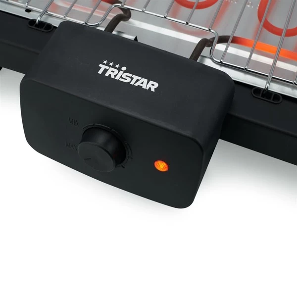 Der Elektrogrill Tristar BQ-2870 ermöglicht ein schönes Barbecue im Garten mit der Familie oder mit Freunden. Mit einer Leistung von 2.000 Watt heizt er schnell auf und man kann innerhalb weniger Minuten Fleisch, Fisch oder Gemüse grillen. Das Fett und die Säfte sammeln sich im speziellen Metall-Fettauffangbehälter, so produziert der Grill weniger Rauch, und die Reinigung ist innerhalb weniger Minuten erledigt. Möchte man einmal nicht am Grill stehen, lässt sich der Grill BQ-2870 als Tischmodell nutzen und man genießt gemeinsam ein leckeres Abendessen. Der Elektrogrill hat einen geräumigen Rost von 36,5 x 25,5cm, so dass man verschiedene Fleisch-, Fisch- und Gemüsesorten gleichzeitig grillen kann. Dank der stufenlos einstellbaren Temperatur hat man eine einfache Kontrolle über den Grillvorgang und kann auch empfindlichere Produkte wie Fisch leichter zubereiten. Der Grill hat außerdem zwei praktische Seitenablagen, auf denen Grill-Werkzeuge und Zutaten abgelegt werden können. Auch am Urlaubsort kann man die einfache Art des Grillens genießen. Dank des mitgelieferten Gestells kann der Grill stehend oder als Tischmodell verwendet werden. Außerdem ist der Grill mit den integrierten Griffen leicht zu bewegen. Das hitzebeständige Gehäuse sorgt dafür, dass die Außenseite nicht heiß wird und der Grill gefahrlos auf einen Tisch gestellt werden kann. Der Elektrogrill BQ-2870 lässt sich nach dem Essen sehr einfach komplett zerlegen, der Grillrost und der Fettauffangbehälter können in die Spülmaschine gegeben werden und das Grillelement einfach abgewischt werden. Der Grill hat einen speziellen Wasserbehälter aus Metall, in dem sich das Fett sammelt.Art.-Nr.: 1833284