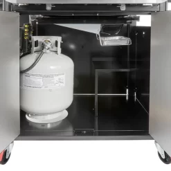 | Details | Lackierte StahltĂĽren, Seitenschrank, Grillrosthaken an der Seite, Gasflaschenwanne | ||