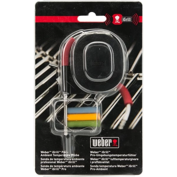 iGrill Messfühler für die Grillkammer. Mit diesem Fühler erhält man die volle Kontrolle über die Temperatur im Smoker oder Grill. Einfache Befestigung der Fühler mit Hilfe der Halterung am Rost zur Überwachung der Umgebungstemperatur. Verbindet sich mit der kostenlosen Weber iGrill-App.Art.-Nr.: 1303169