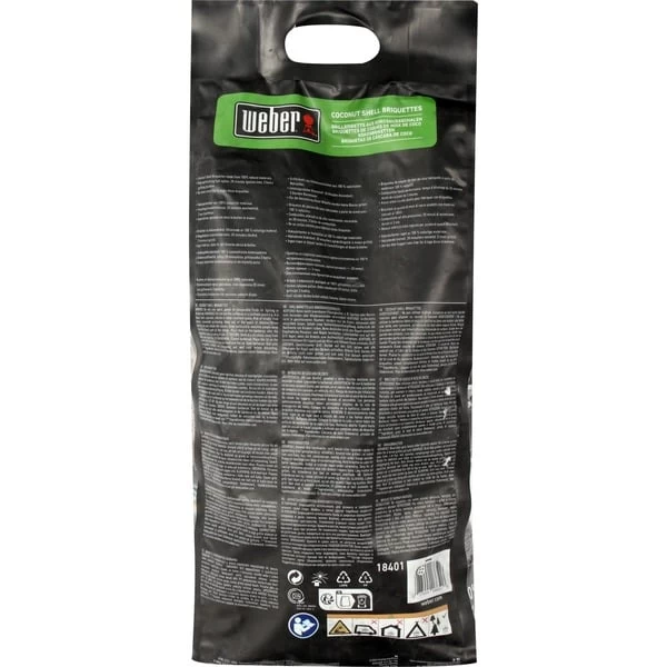 Die Kokosnuss Briketts 18401 von Weber sind aus Kokosnussschalen-Holzkohle hergestellt. Sie bestehen aus 100% natürlichen Zutaten, ohne dass dafür Bäume gefällt werden müssen. Die Verpackung ist aus recyceltem Kunststoff.Art.-Nr.: 1810879